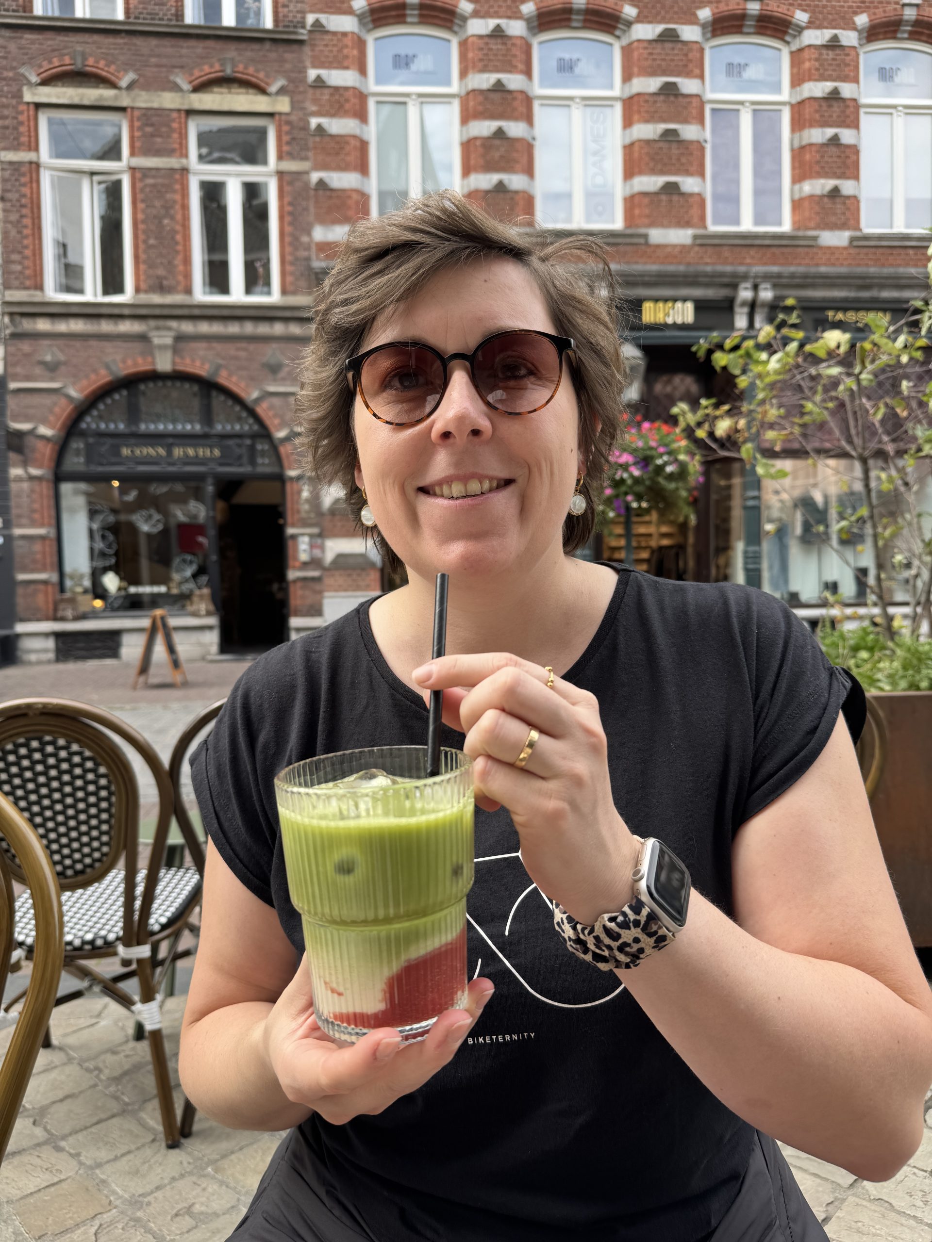 Das Café selbst ist stylisch und modern eingerichtet, ein Kontrast zu den historischen Bauten drumherum. Ich bestellte einen Iced Matcha Latte, und schon beim ersten Schluck war ich begeistert: cremig, leicht süß, genau richtig.